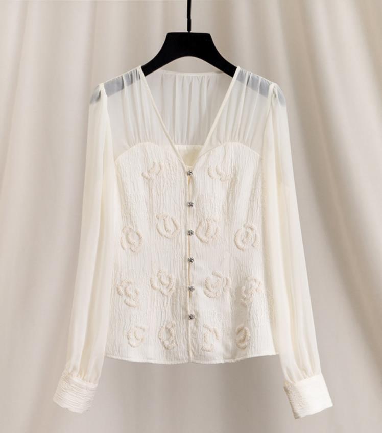 Bead Diamond Wrapped Chest V-neck Slightly Women Shirts Blouses And Tops Long Sleeve T Shirt For Women