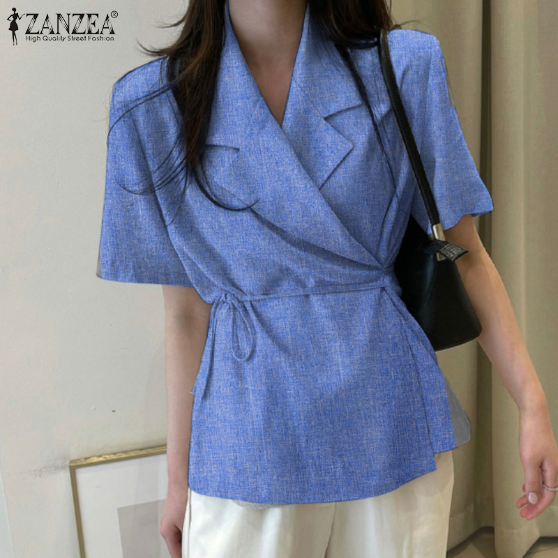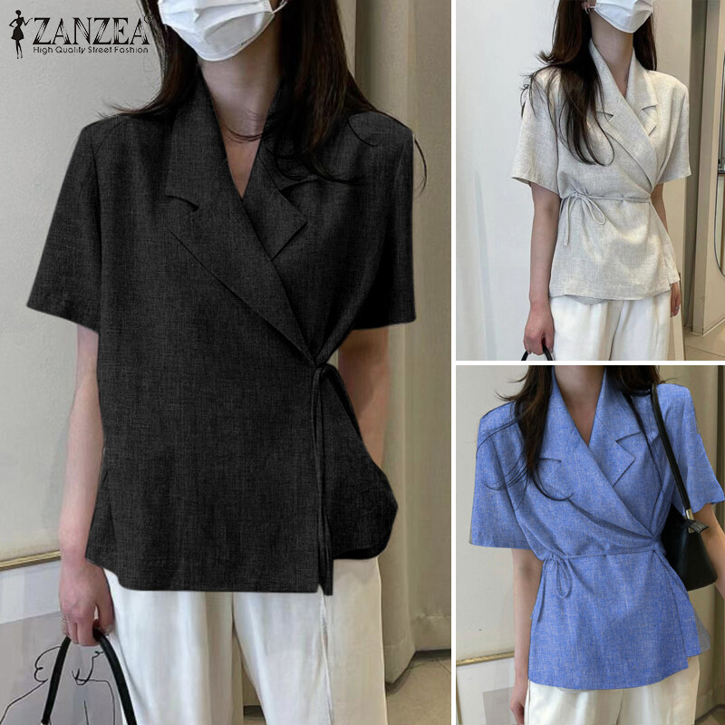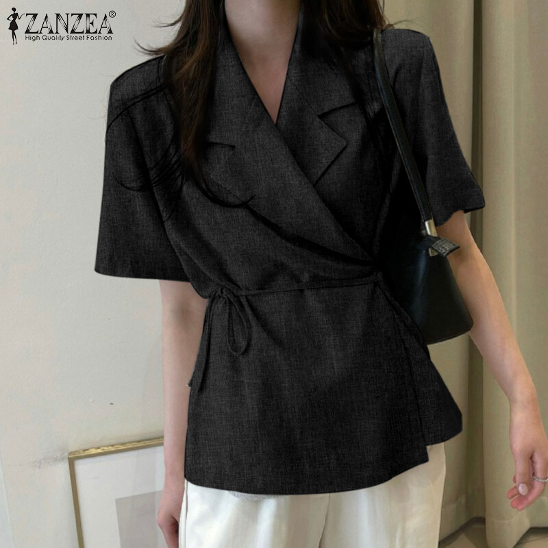 ZANZEA Korean Style Womens Short Sleeve Slims Business Office Plain Lace-up Blazer Suits