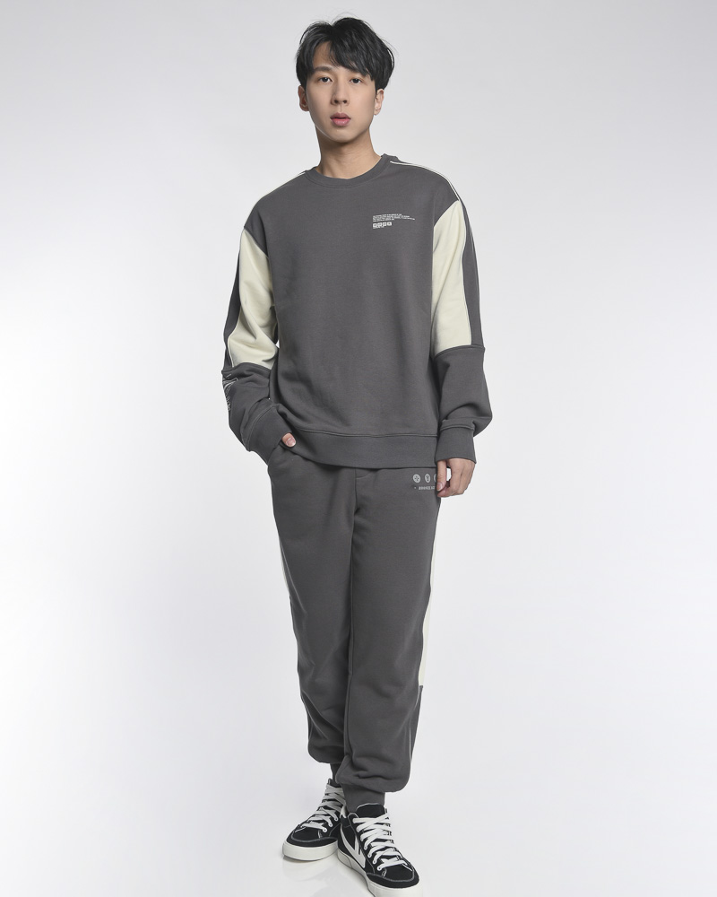 Yishion Men Oversized Colour-Block Long Sleeve Sweatshirt with Small Chest and Sleeve Print (Dk. Grey)